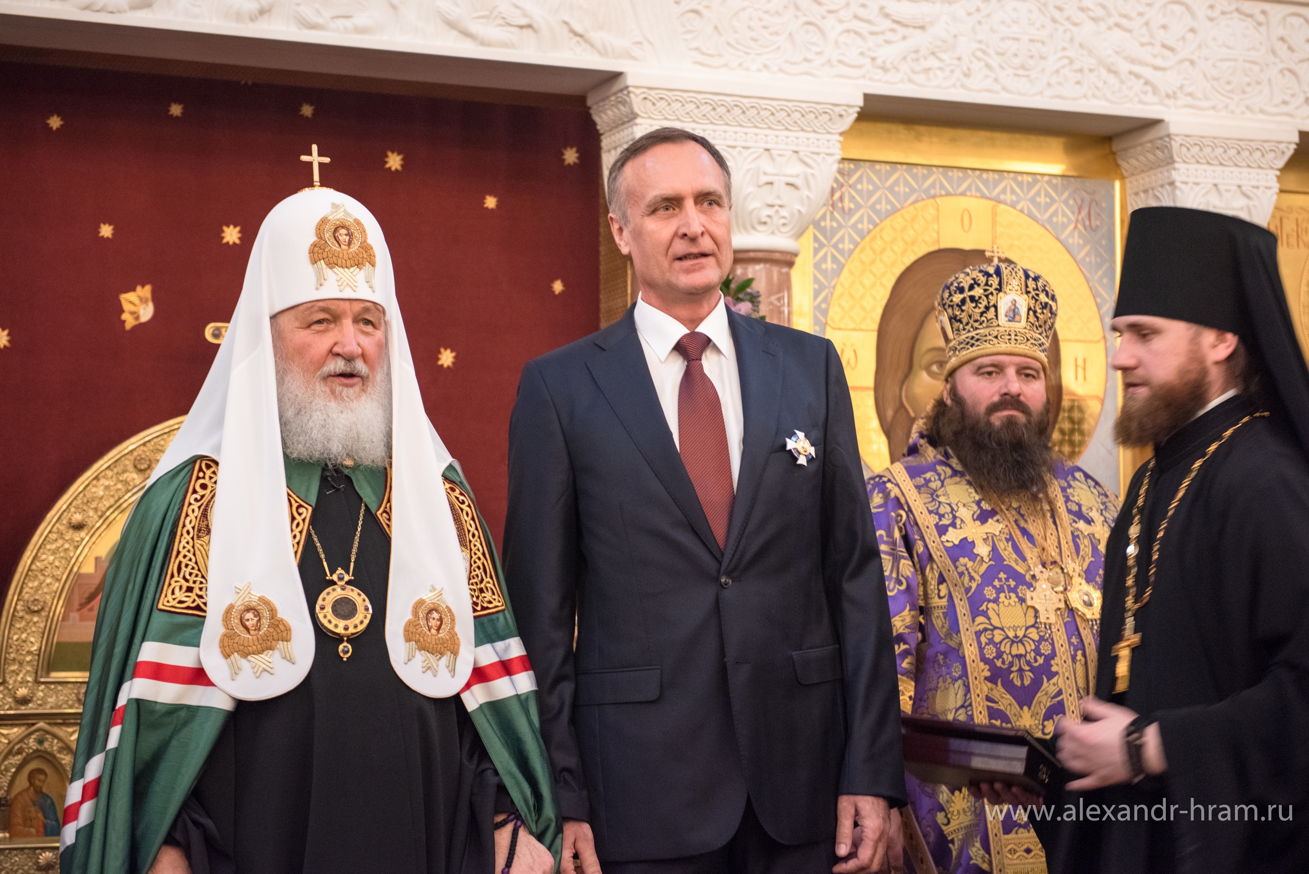 Во внимание к помощи в строительстве храма святого благоверного князя Александра Невского — Патриаршего подворья в Александровке г. Москвы Святейший Патриарх Кирилл вручил церковные награды: